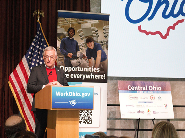 Lieutenant Governor Jim Tressel announces Aspyr as the lead for WorkOhio in the Central Ohio region.